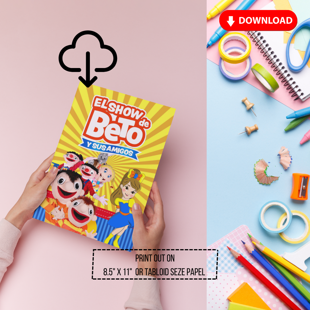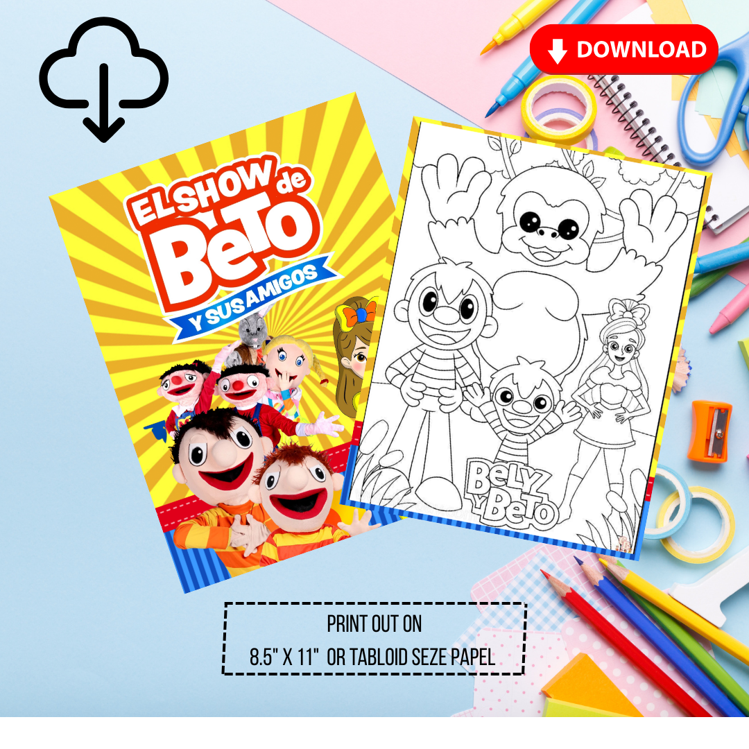 La diversión comienza aquí con este encantador libro para colorear de 14 páginas de Bely y Beto! Incluye 12 ilustraciones listas para imprimir en tamaño carta (8.5 x 11”), perfectas para que los niños disfruten coloreando a sus personajes favoritos.